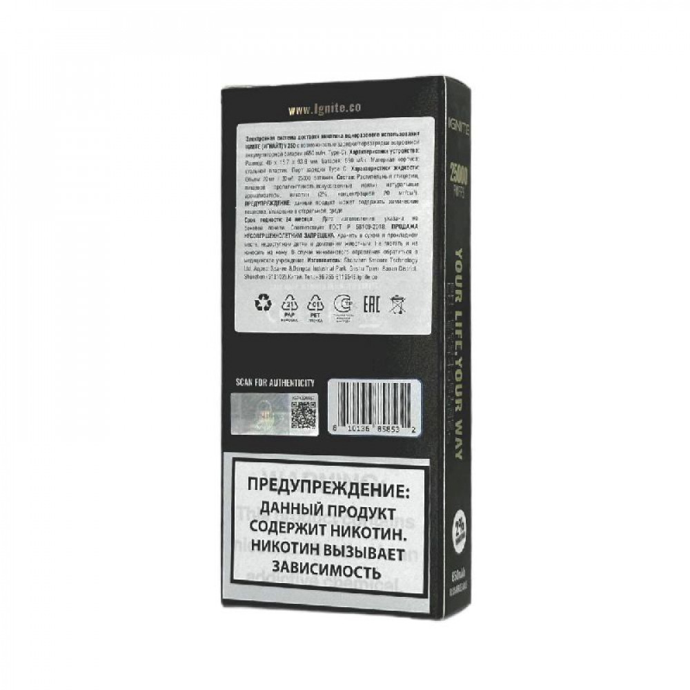 Электронная сигарета Ignite V250 Gold 25000 - Grape Ice (Виноград лёд) - купить в Томске